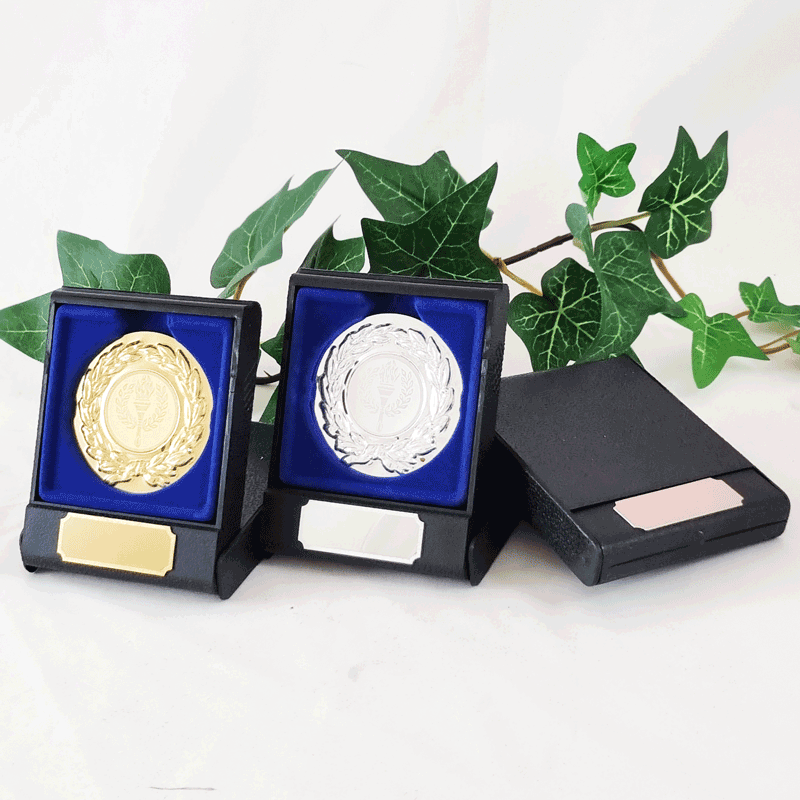 Alumiinikoriste ja aihemerkki muovirasiassa.