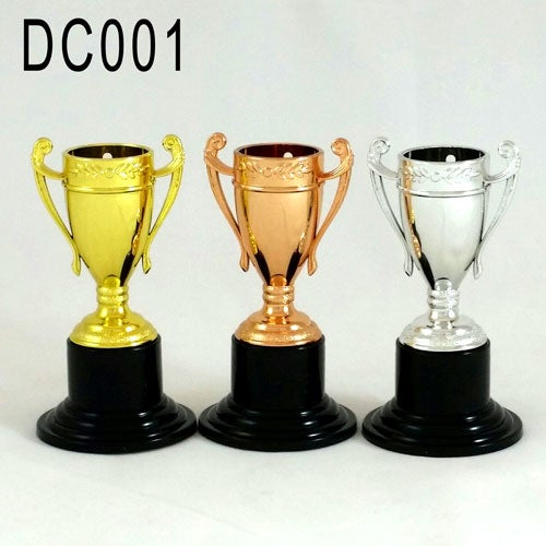 Kokonaan muovia. Kulta, hopea tai pronssi. Myös mitalina nauhalla hintaan 3,75e.