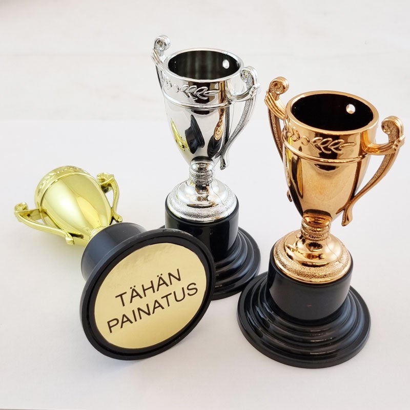 -Tekstipainatuksen pokaalin pohjaan ilman merkkirajaa
